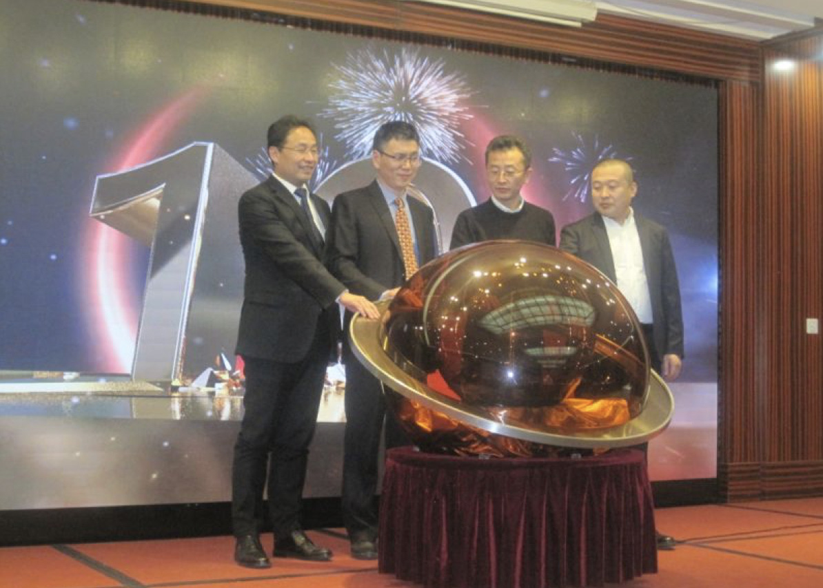 季群先生與合作伙伴北京生泰源生物科技有限公司總經理任玉龍先生、長沙邦特生物科技有限公司總經理李滔先生、北京都潤科技有限公司總經理孫鳴先生共同啟動象征“新鋅”產品的水晶球
